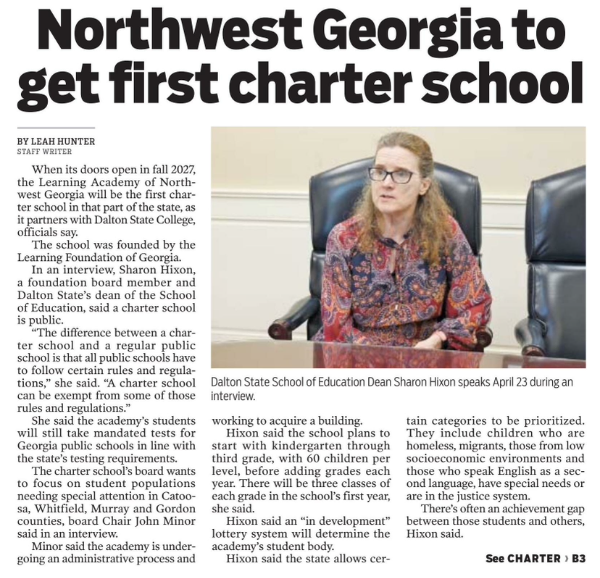 The Learning Academy of Northwest Georgia is collaborating with Dalton Public Schools to apply for its charter. The school’s leadership is from the LEARNING Foundation of Northwest Georgia.